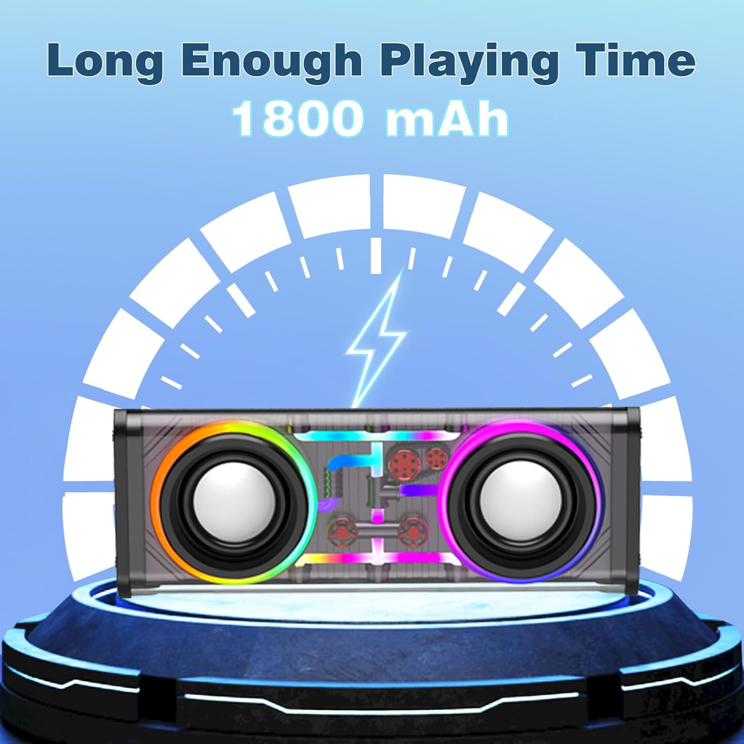 - BLUETOOTH 5.3 & 6H PLAYBACK TIME - Advanced Bluetooth 5.3 Technology Enables V8 Wireless Speakers To Have Faster Connection Speed, More Stable Signal Transmission, And Lower Power Consumption. The Wireless Connection Range Is 100 Feet, Enabling Fast And Stable Signal Transmission, Including Smart Cell Phones, Computers, TVs, Tablets, Laptops, Projectors, VR, Game Controller Etc. V8 Outdoor Speaker Supports TF Cards To Play Music And Enjoy Different Listening Experiences. V8 Bluetooth Speaker Has A Built-in 1800 MAh Rechargeable Lithium Battery, Which Can Continuously Providing Up To 4~6 Hours Play Time ( Depends On Playing Volume) When Fully Charged.