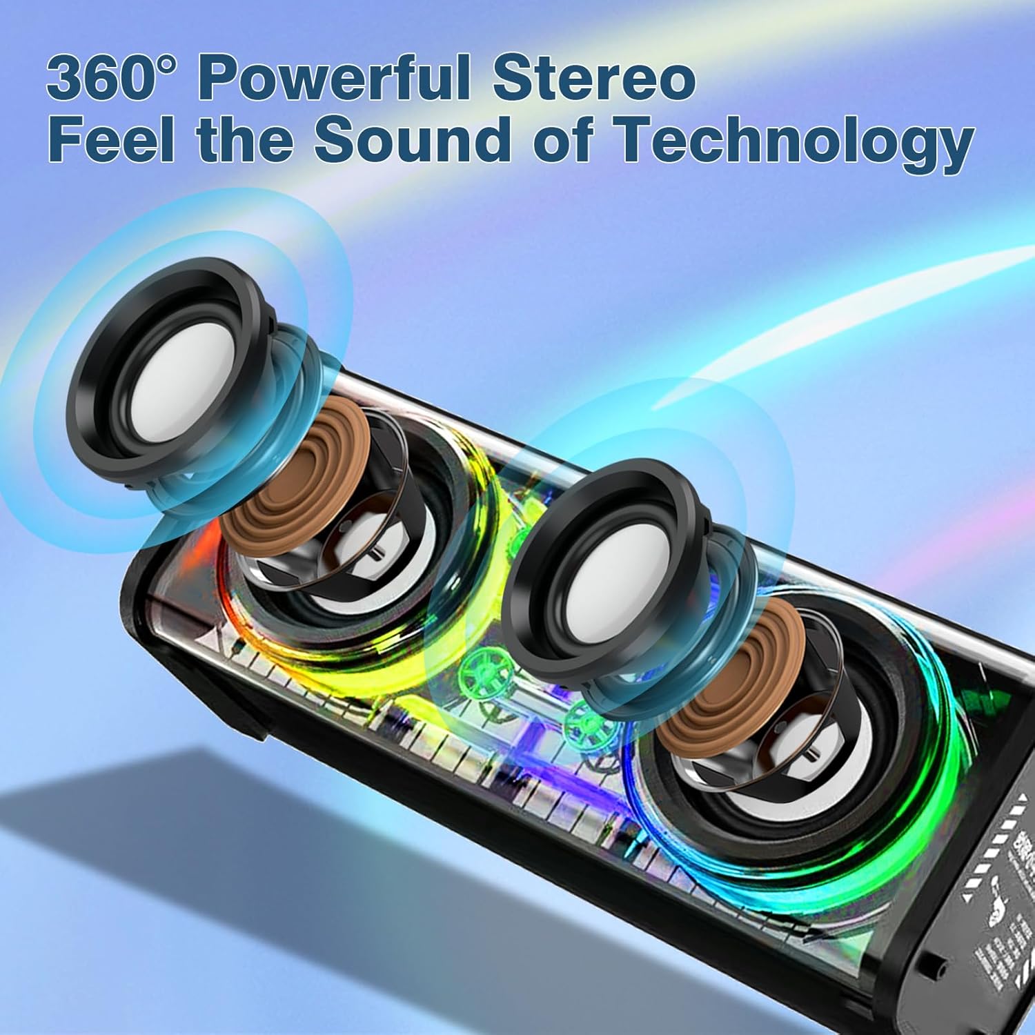 - TRANSPARENT CASING AND LED COLORFUL LIGHT - V8 Bluetooth Wireless Speakers Are Made Of Transparent Acrylic And Environmentally Friendly ABS, With Exquisite Design. The LED Light Bluetooth Speaker Offering 5 LED Lighting Modes, It Is Easy For You To Customize The Lighting Effects To Meet Your Preferences With The Push Of 'M' Button. Add A Vibrant Touch To Your Music Listening Sessions, Creating A Dynamic And Visually Appealing Atmosphere For Party. Make Any Party More Memorable With These Visually Stunning Light Effects. (Click 'M' Button Twice To Turn Light Off And Turn Light On).